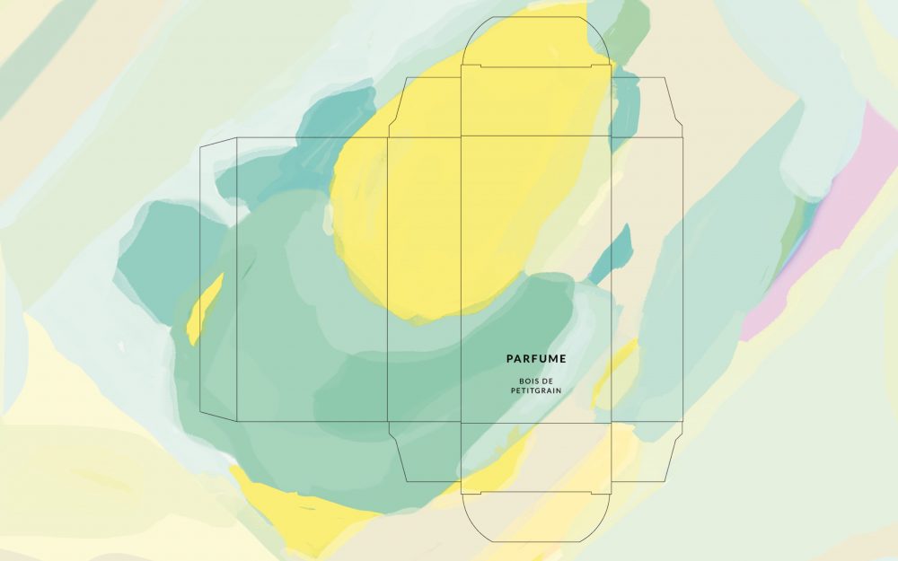 Das Produkt als Erlebnis inszenieren – Farbige Flächen stellen die unterschiedlichen Komponenten einer harmonischen Duftkomposition dar.